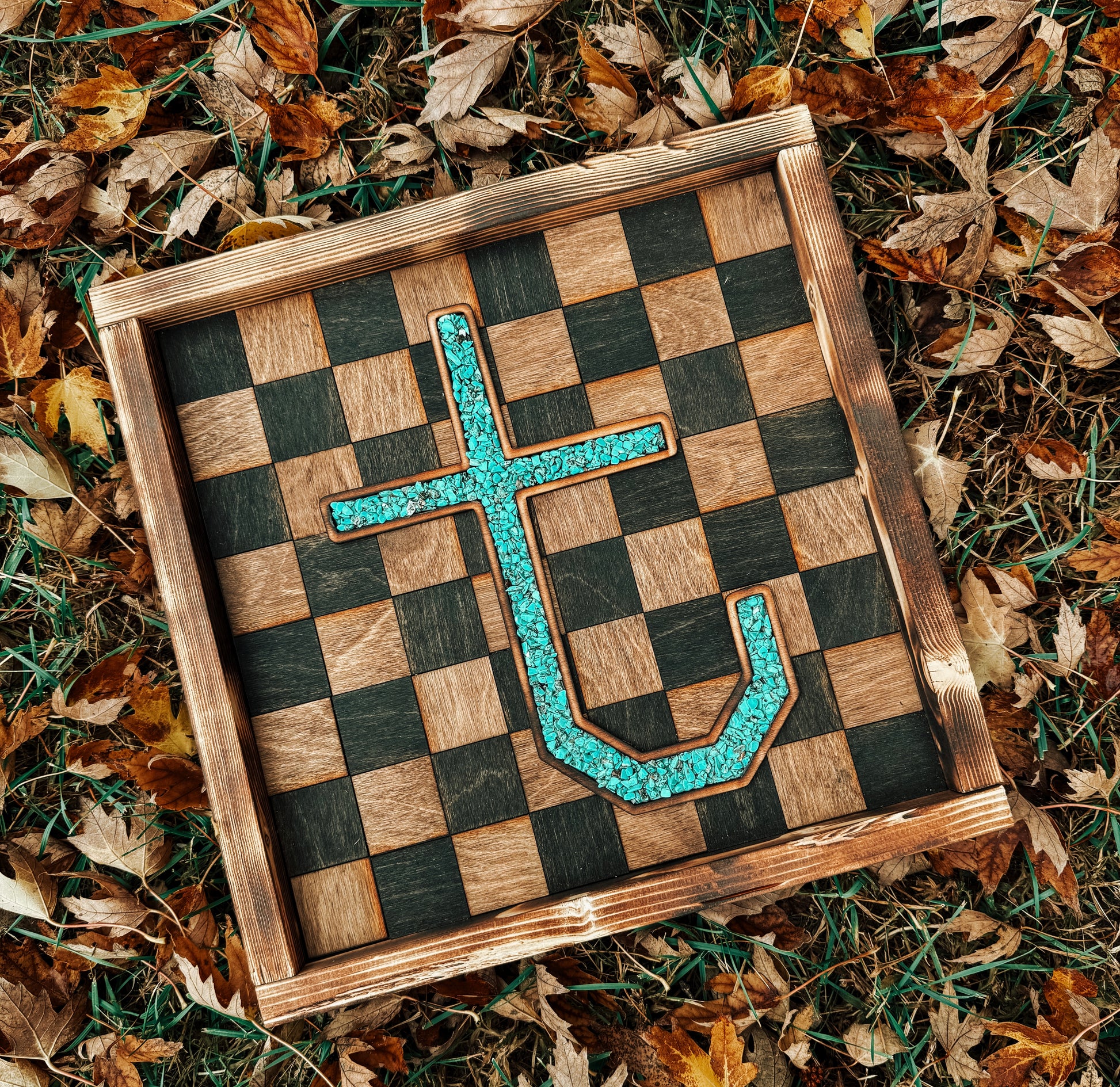 This sign includes a wood cut-out of your brand or name embellished with the stone color of your choice in the middle. Please upload your customization here. A digital file is preferred, but a photo or drawing is also sufficient in most cases as well. If I need to create the digital file from a photo/drawing, a proof will be emailed to you for approval before the sign is finished. Listing photo is the default checker color.